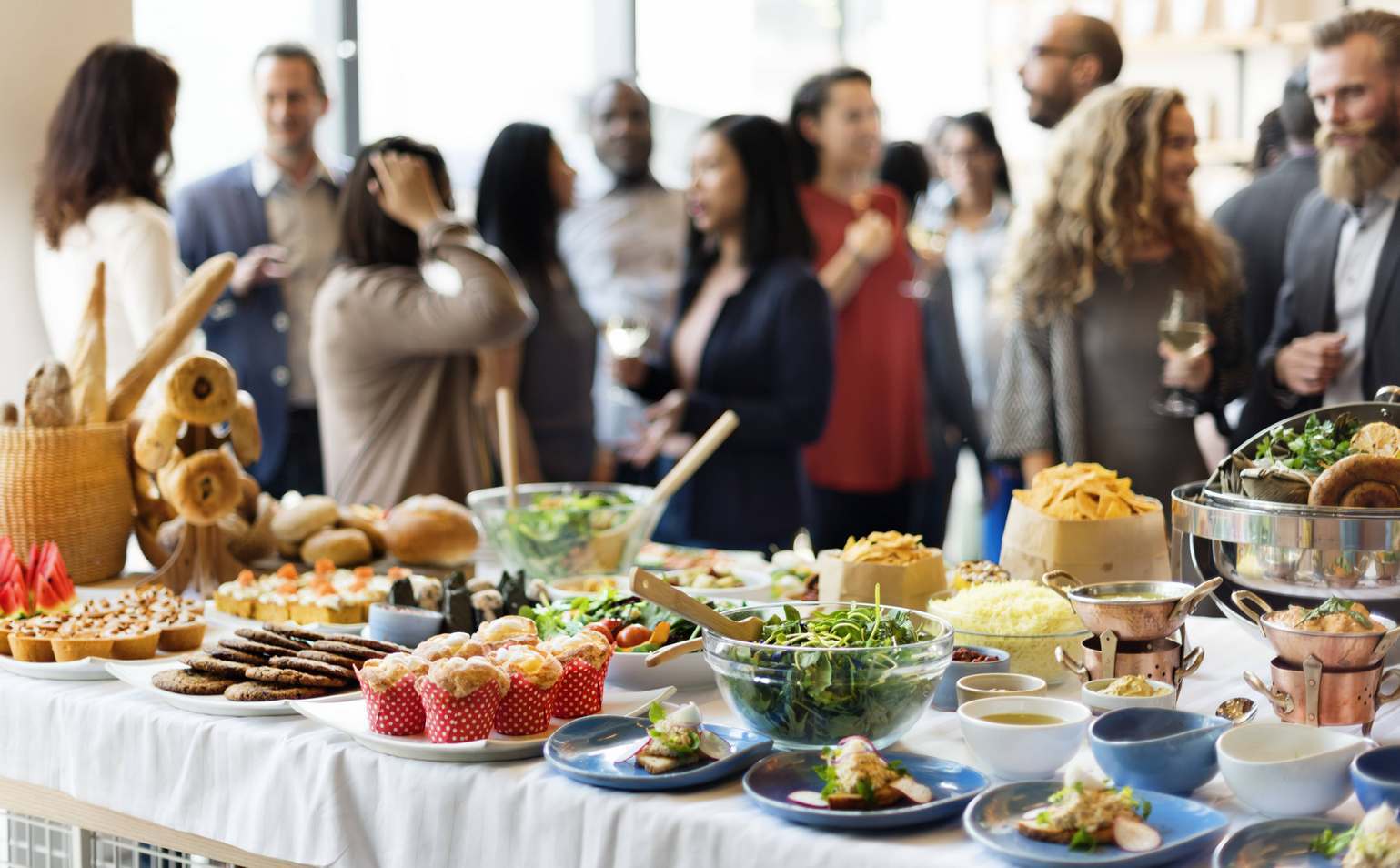 • закуски по-штучно — канапе, тарталетки, мини-кростини и т. д. 5–8 видов (по 80% от кол-ва гостей).
